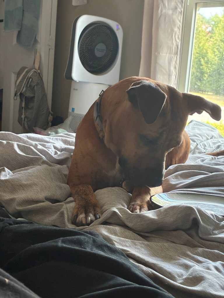 When those days happen (and they happen a lot) I’m thankful for the blessing known as Noel: my sassy American staffie / black mouth curr mix. It always starts the same way.